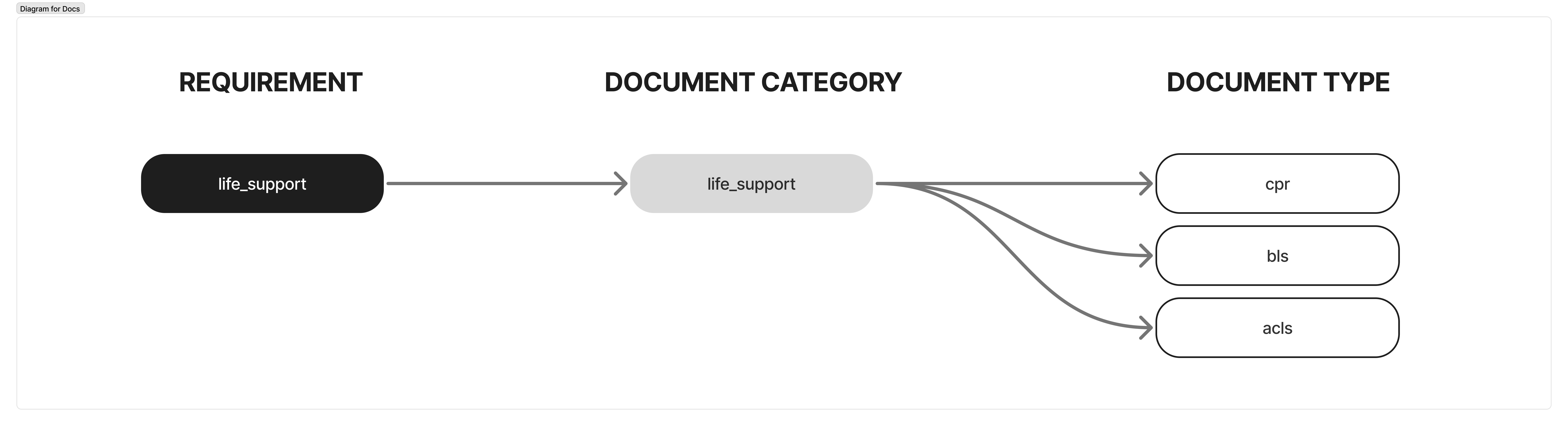life_support could be satisfied by several document types (cpr, bls, acls), all of which are configured to fall under the category life_support.
